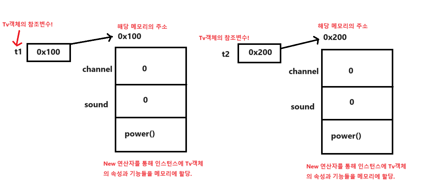 t1.channel = 1; 처럼 0x100주소값에 매핑된 t1이라는 참조변수를 통해서 해당 인스턴스에 접근할수있다는것이다.