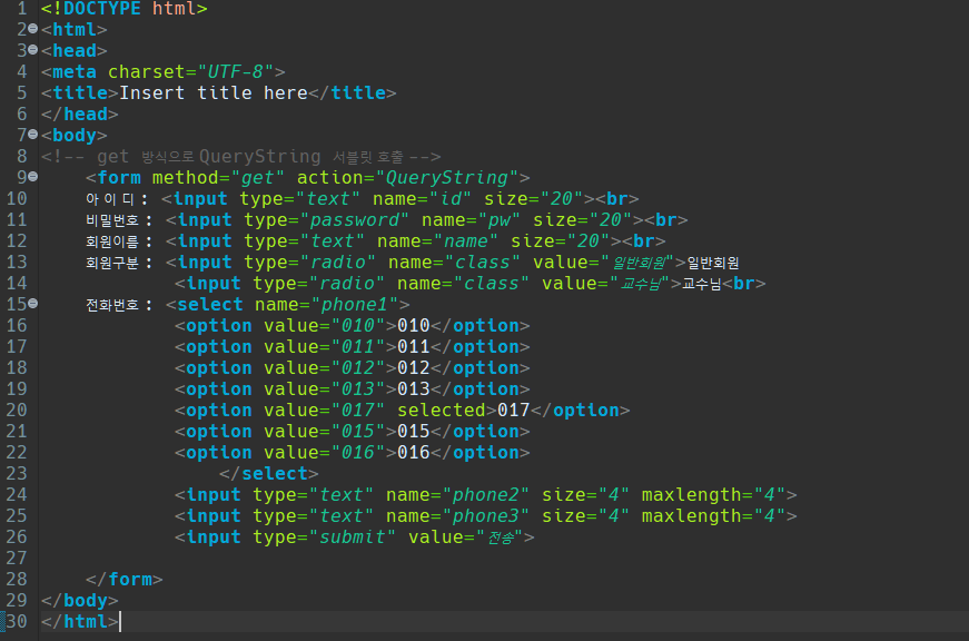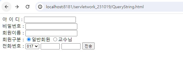 "/QueryString" url에 매핑되어 사용자가 해당 주소로 접속하여 데이터를 입력하게되면,