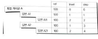 ref = 1 , step=2, level = 2 이다. ( level = level+1에서 답변의 답변은 초기 level값 1 )