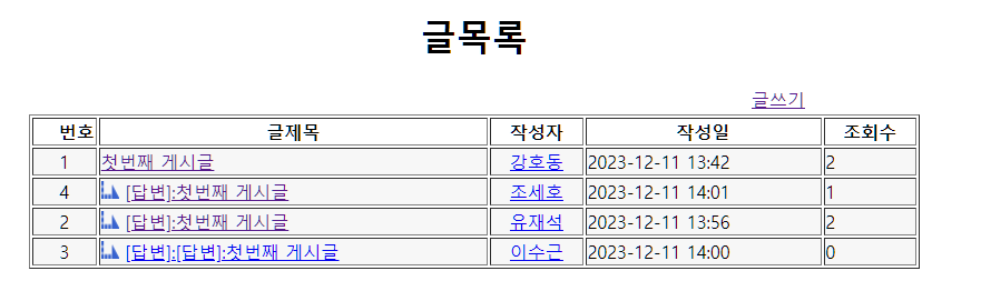 (<img> 태그를 통해 답변글 이미지를 넣어줘도 된다.) List 출력을 하게되면 아래와 같이 출력된다.