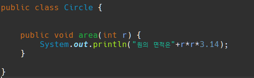 원의 반지름을 구하는 메소드 area() 1개만을 가진 Circle 클래스와