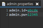 해당 파일에 간단하게 admin.id 와 pw라는 이름의 값들을 쓰고, 이 외부 파일을 스프링에서 property값으로 주입시킬 것이다.