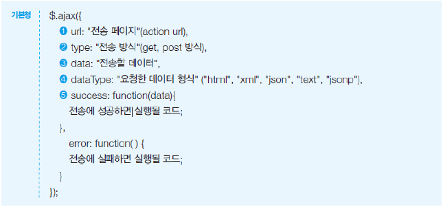 $.ajax()의 기본형식은 다음과 같다.
