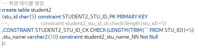 - CHECK : 해당 COLUMN에 들어올수 있는 값,범위등 제한 조건