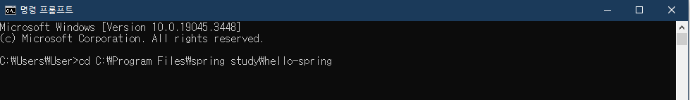 1. cmd에서 ' cd ' 명령어를 통해 스프링부트 연습파일이 있는 경로로 이동한다.