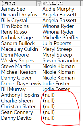 A 테이블은 해당하지않더라도 모두 가져온다면 LEFT OUTER JOIN
