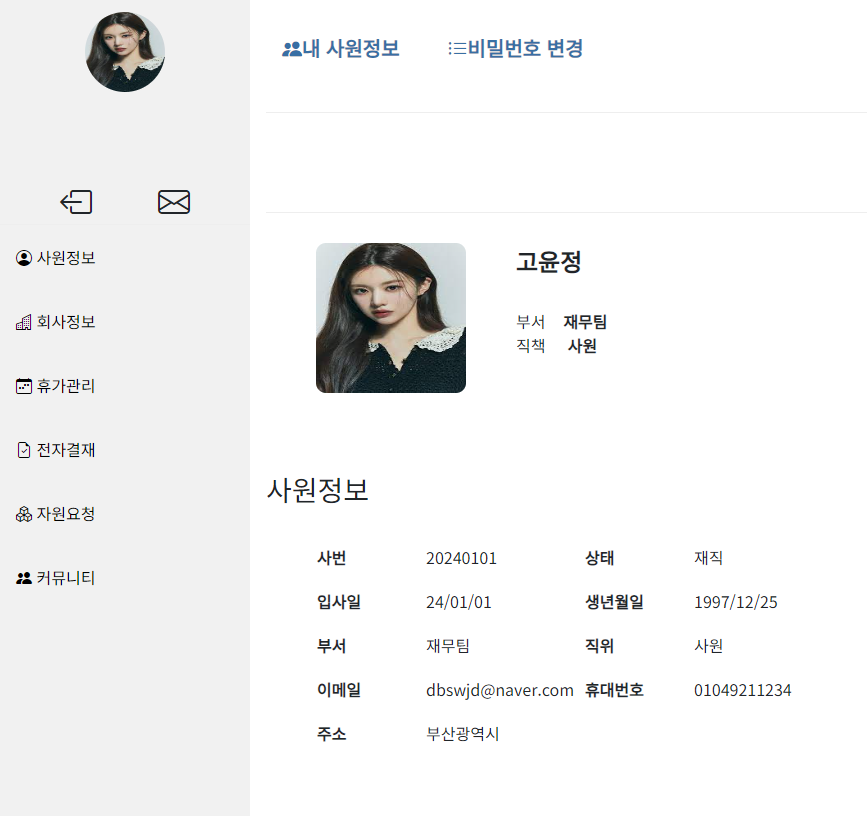 사원정보 페이지에서 DB에 있는 사원정보를 가져와 출력해준다.