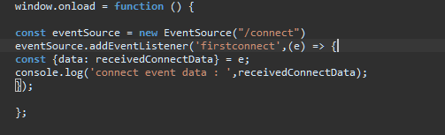 즉, 서버에서 보낸 eventsource의 name이 'firstconnect'인 데이터의 data값을 콘솔에 출력한다는 뜻이다.