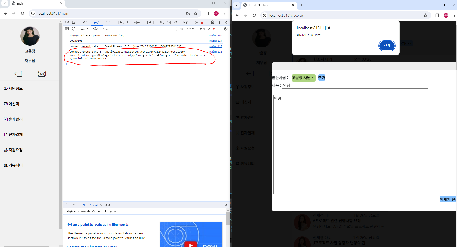 그룹웨어 시스템에서 사용자에게 도착한 메시지,전자결재 내역을 실시간으로 알림을 보내줄 기능을 구현하기위해