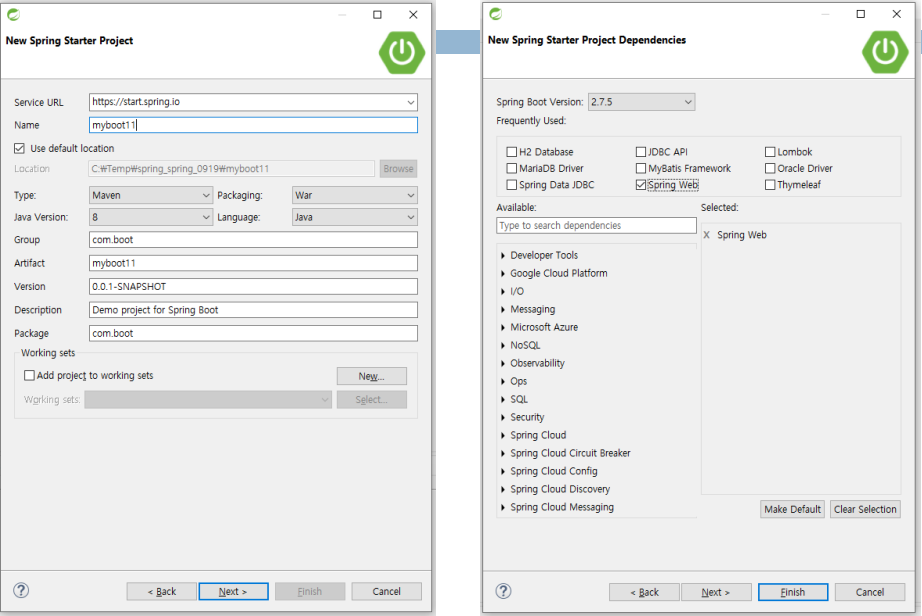 스프링 부트 프로젝트 생성은 STS에서 New Spring Starter Project를 통해 생성하거나