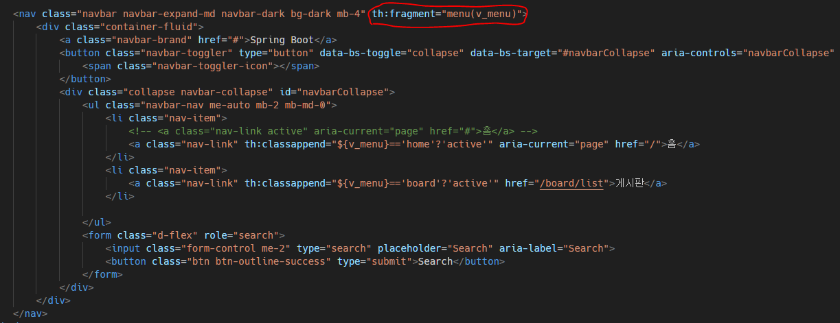 그리고, v_menu라는 변수는 위의 th:fragment=에서 menu에 할당되므로,