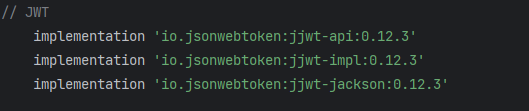 Jwt를 사용하기위한 디펜던시를 build.gradle에 추가해준다.