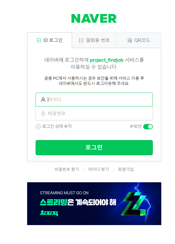 네이버 로그인 인증 엔드포인트에 접근하면 해당 화면이 나오고,