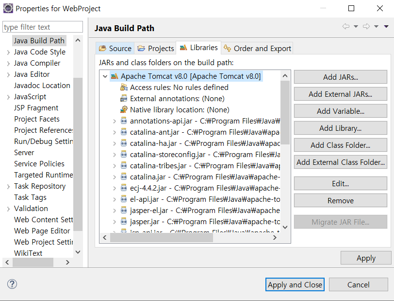 생성한 프로젝트에서 WebContent - WEB-INF - lib에 jsp 파일을 생성하면 javax.servlet.http.HttpServlet 이 클래스패스에 없다는 오류를 발생시킨다.