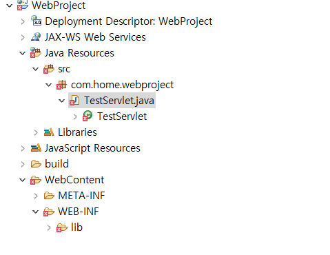 또한, src폴더에 Servlet 파일을 생성해주면, javax.servlet이 없다는 오류를 발생시킬것이다.