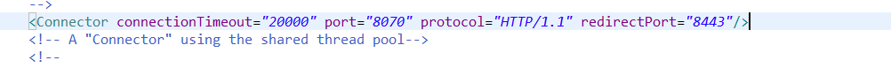 그에따라 Servers의 tomcat - server.xml에서 Connector이 다음과같이 8070 포트로 변경된것을 볼수있다.