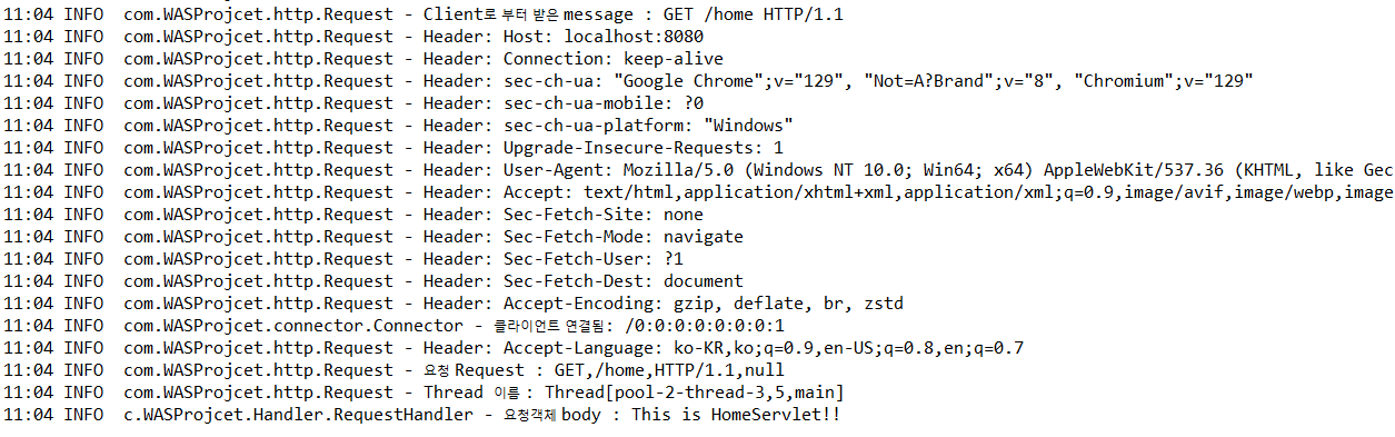 클라이언트의 다양한 요청을 처리하는 기본적인 WAS의 기능을 모두 구현해주었다.