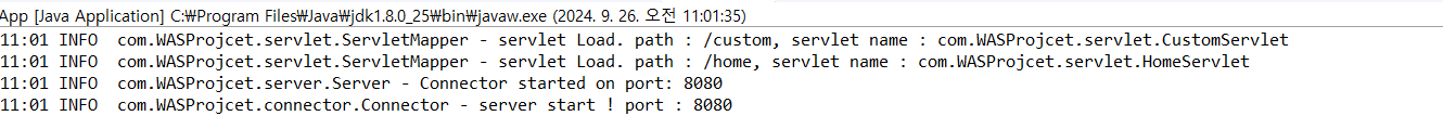 내가만든 WAS 프로그램이 실행되면 가장먼저 Servlet을 Load하여 Mapping한뒤 커넥터를 가져와 실행하는 것이다.