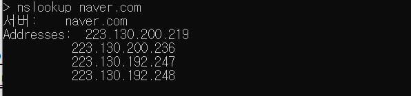 nslookup [Address] : 사용되는 DNS서버의 IP 주소를 나타낸다.